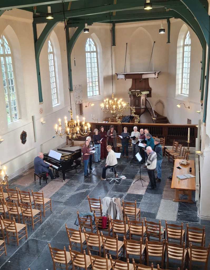 Generale repetitie voor ons concert op 30 november 2025 in de Dorpskerk van Zwaag. An English ADVENTure met carols en Rejoice in the Lamb van Benjamin Britten o.l.v. Hilda Wiarda en met piano begeleiding van Jos van der Kooy.
